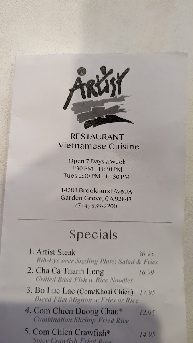 Welcome to Cafe Artist Restaurant, a hidden gem nestled in the heart of Garden Grove, CA. This vibrant eatery specializes in authentic Vietnamese cuisine, offering an enticing menu that is sure to please any palate.